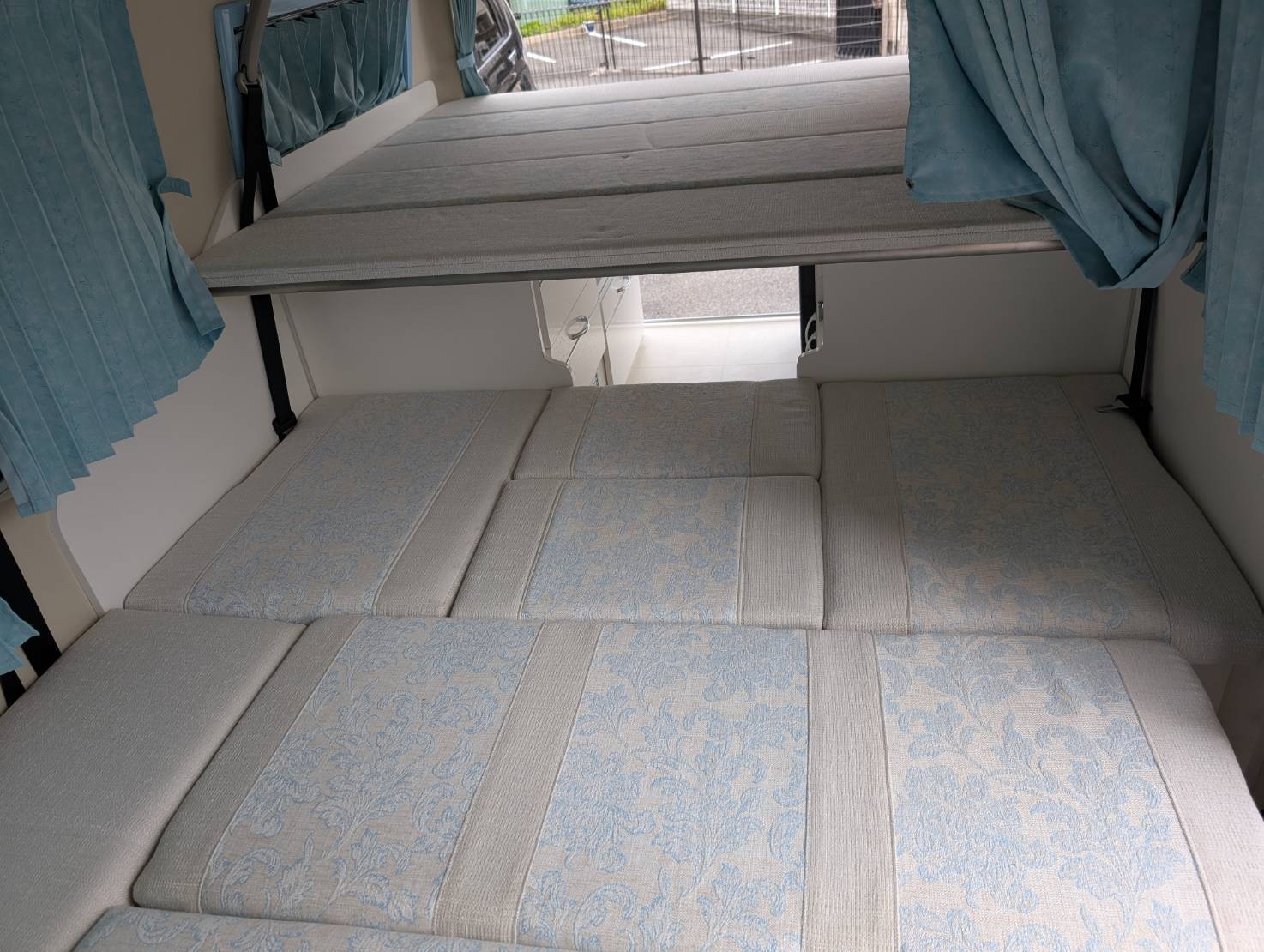 お二人で使う「くるま旅」用としてお使いいただくにも、お子様やお孫さんが増えれば二段ベッドマットを載せて…載せ降ろしができる装備もあり、可変的な装備が充実していますので、用途に応じてきっと使いやすいキャンピングカーとなるはずです。