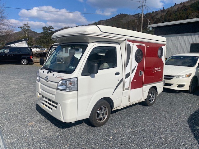 軽キャンパーの仲間、軽トラックがベースの ”ジェル一体ボディ構造” 流麗デザインが魅力的な『ラ・クーン』の中古車です。
