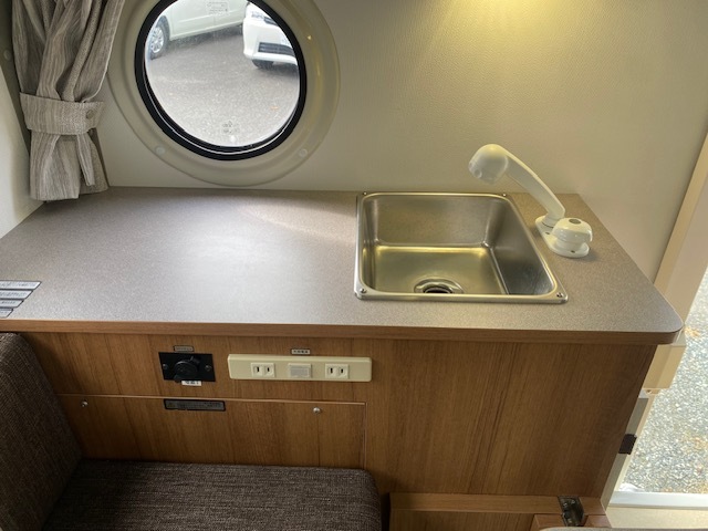 5人乗りでありながら、ベッドは2段構造になり、流し台まで装備されています。